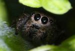 Salticids are small (most are less than one inch long), and they can jump 10 - 40 times their body length to pounce on prey or to avoid becoming prey. They accomplish this using good ol' fashioned hydraulics: they pump fluid into their legs quick enough to allow them to spring at lighting speed. Enjoy these photos. Click on some of them and you'll almost be able to see the reflection of the camera in their central eyes. My favorite is the last one. He looks like he's been naughty and is hiding from his parents. Who could chastise the little guy, with his liquid eyes and furry pedipalps? The eaighth one is awesome too. Text source Photos via: PopGive.com